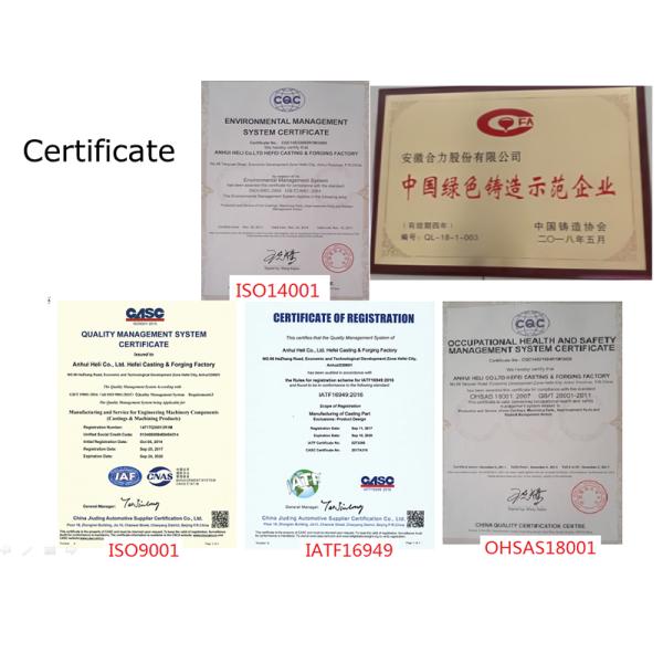 Hefei Casting & Forging Factory is a member of Anhui Heli Co., Ltd. which was established in 1958.We are the green casting demonstration enterprise of China. We own foundry lines of Vacuum, Lost Foam, Static Pressure, Resin Sand, Vertical Molding and 3D printing technology, it is the most complete casting process enterprise in China. We have owned ISO 9001, ATF16949 quality system certification, ISO14001 environmental management system certification and OHSAS 18001 .